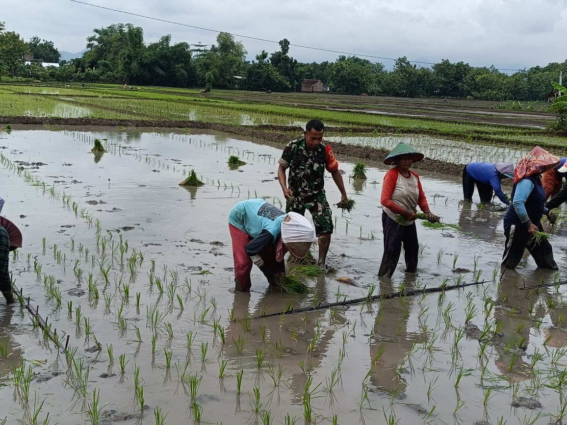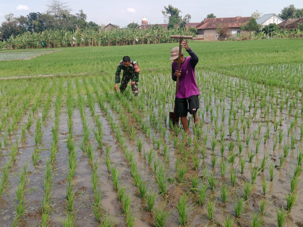 Pendampingan Petani, Babinsa Kodim Ponorogo Bantu Penyiangan Tanaman Padi
