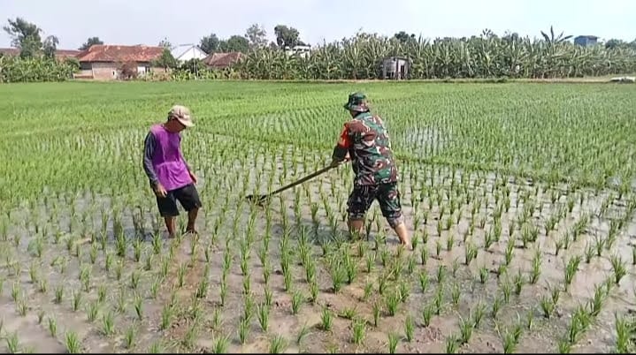 Babinsa Kodim Ponorogo Bantu Petani Penyiangan Gulma Tanaman Padi