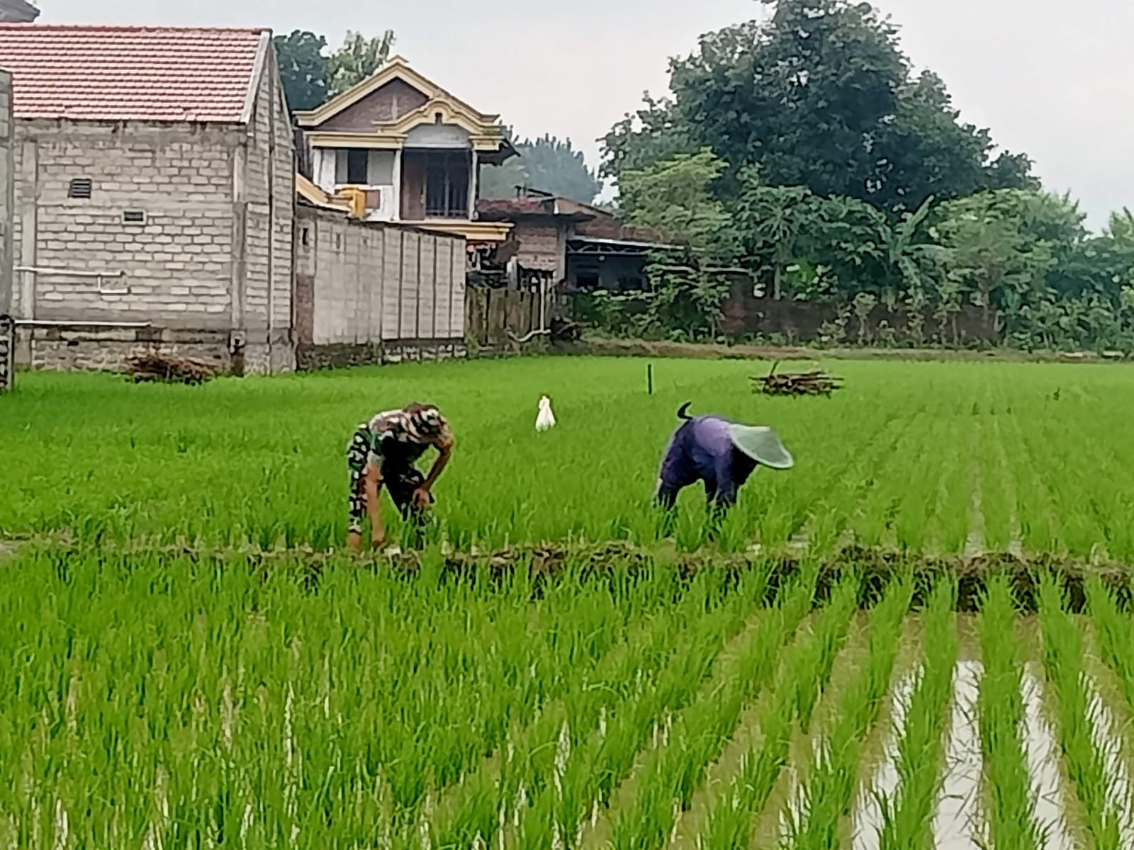 “ Hari ini kami membantu Bapak Masrur salah satu petani yang tergabung dalam Poktan Tani Mulya Dukuh Medelan Desa Jalen yang sedang melakukan perawatan tanaman padi di sawah milik pribadi, “ ujar Sertu Erwin Dwi Arafat yang sehari hari menjadi Babinsa Desa Jalen tersebut.