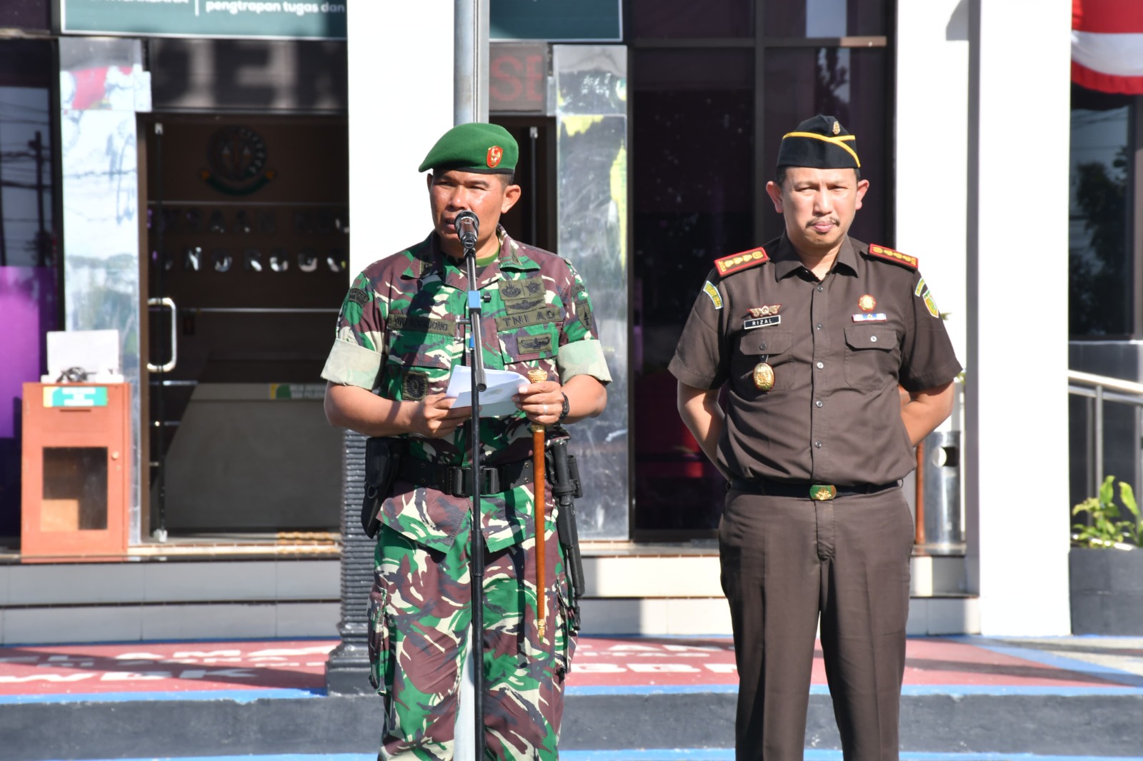 Ponorogo,-Komandan Kodim 0802/Ponorogo Letkol Inf Dwi Soerjono dan Kepala Kejaksaan Negeri Ponorogo Dr Teuku Herizal S.H., M.H. tadi pagi memimpin Apel Gelar Keamanan Kejaksaan Negeri Ponorogo Tahun 2025 bertempat di Lapangan Kantor Kejaksaan Negeri Kabupaten Ponorogo, Jumat (01/08/2025).