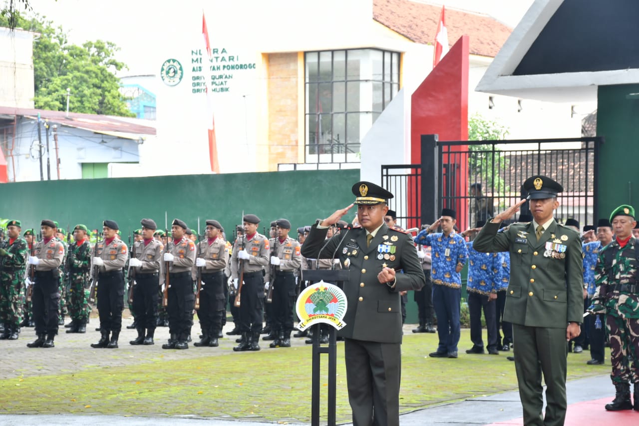 Upacara dipimpin Komandan Kodim 0802/Ponorogo Letkol Arh Farauk Saputra dan dihadiri antara lain Forkopimda Kabupaten Ponorogo serta para Perwira dan anggota Kodim 08092/Ponorogo serta Ketua Persit Kartika Chandra Kirana (KCK) Cab. XVI Dim Ponorogo Ny. Nelly Farauk Saputra dan Pengurus ditambah para undangan lainnya.