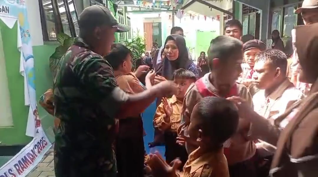 Ponorogo, Sertu Nuril Muhsinin anggota Koramil Tipe B 0802/07 Badegan, Kodim 0802/Ponorogo kemarin (Sabtu, 02/08) memberi pelatihan dan bimbingan khusus kepada anak anak Sekolah Luar Biasa Negeri (SLBN) Desa Kapuran Kecamatan Badegan Kabupaten Ponorogo, Minggu (03/08/2025).