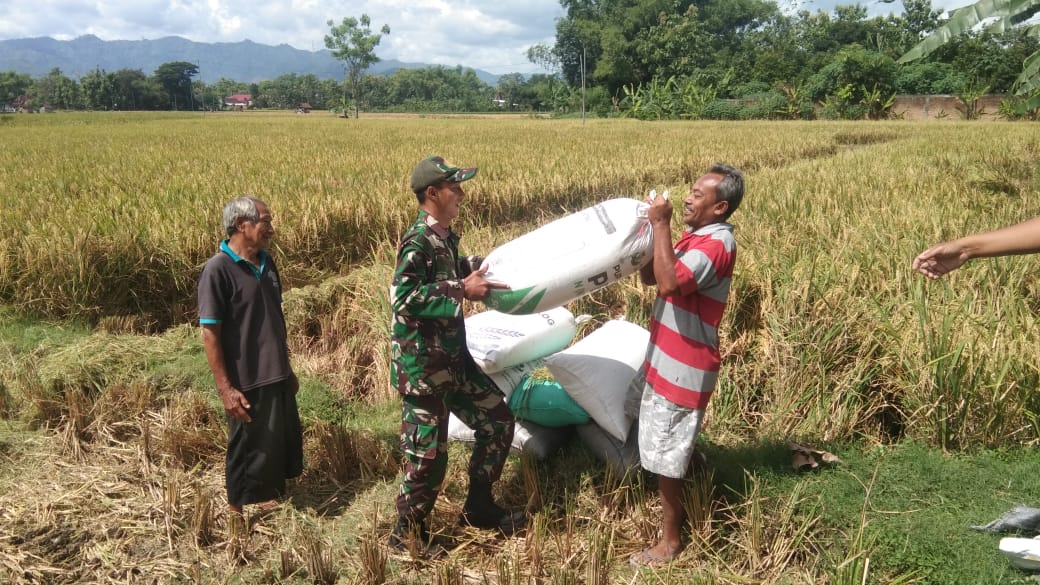Petani Panen, Babinsa Kodim Ponorogo Bantu Angkat Gabah